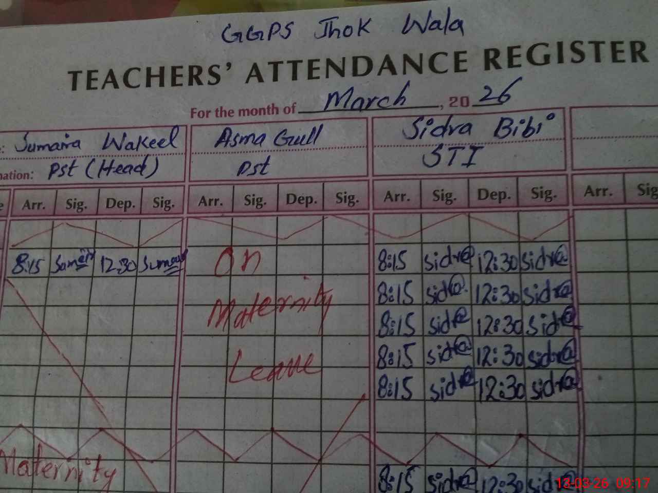 | 36**** | Su**** Wa**** | PST Science/Maths | Regular | 0 | 0 | 0 | 0 | 0 | 0 | 0 | 0 | 0 | Maternity |