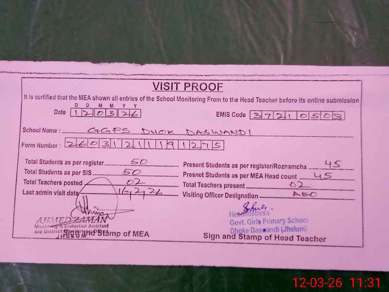 | EMIS Code: 37210503 | Name of School: GGPS DHOK DASWANDI | |||