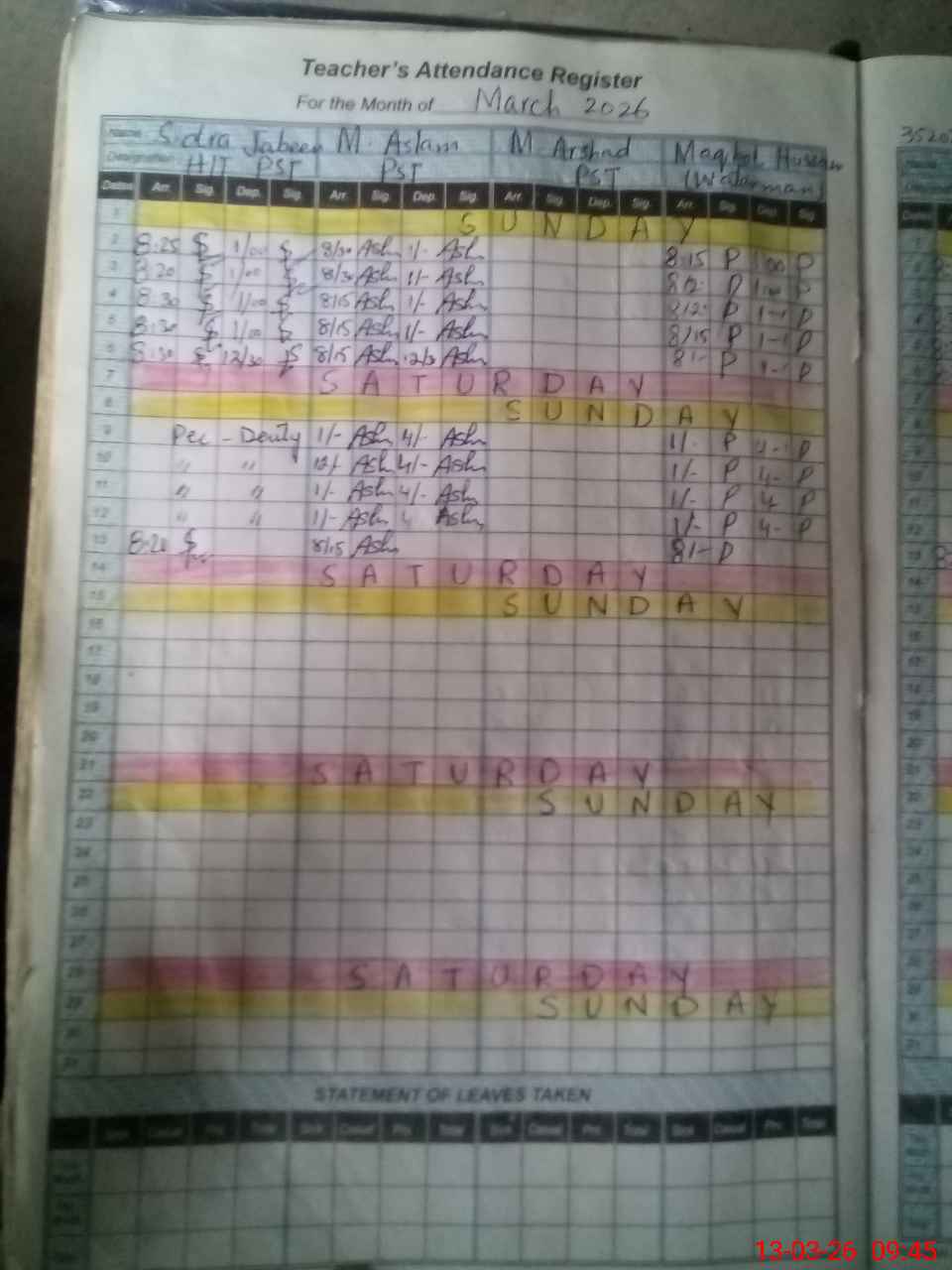 | Leave | Duty | Absent | Maternity | Medical | Ex- Pak |