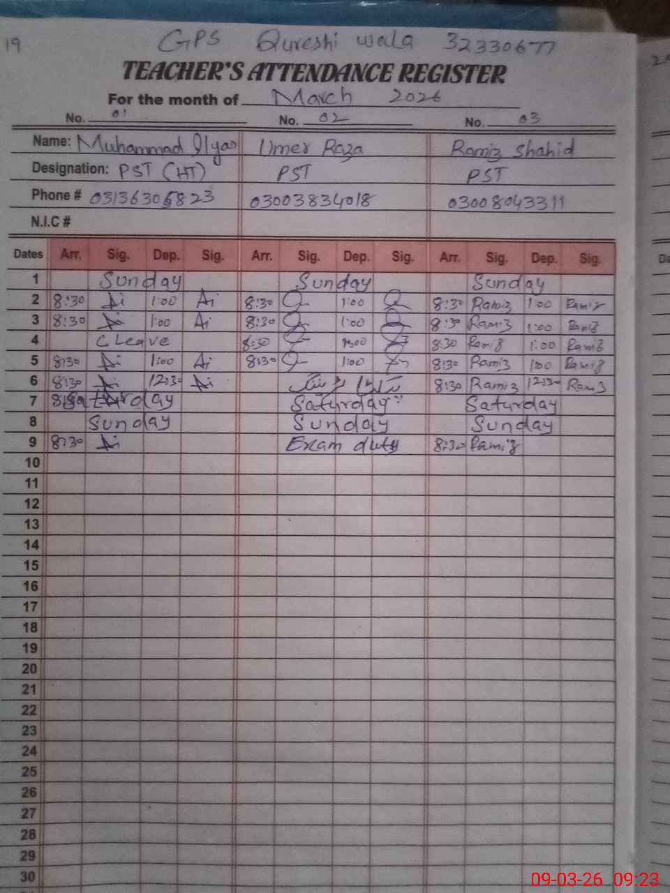 | EMIS Code: 32330677 | Name of School: GPS QURESHI WALA | |||