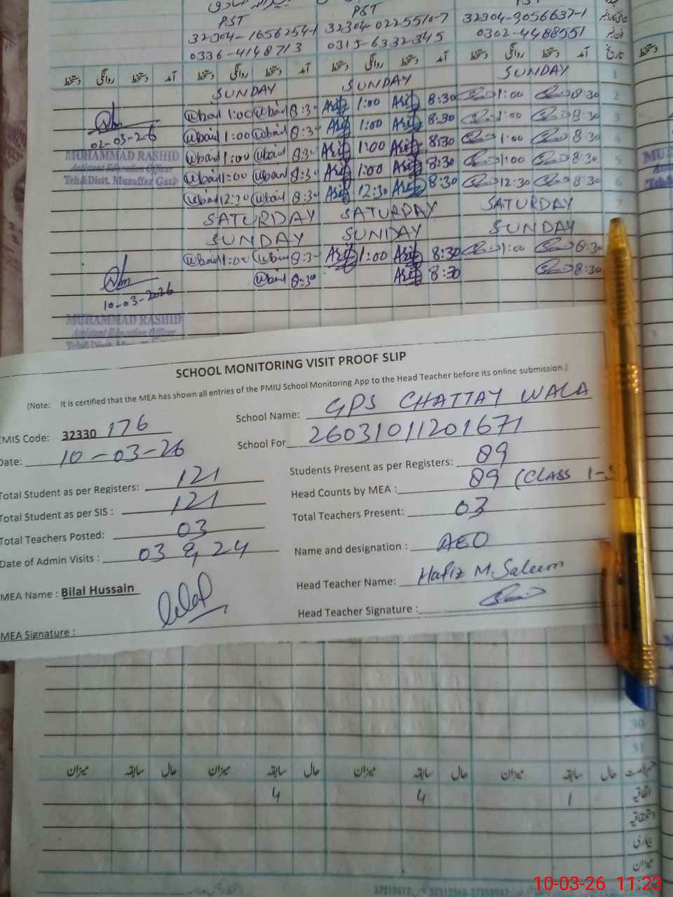 | EMIS Code: 32330176 | Name of School: GPS CHATTAY WALA | |||