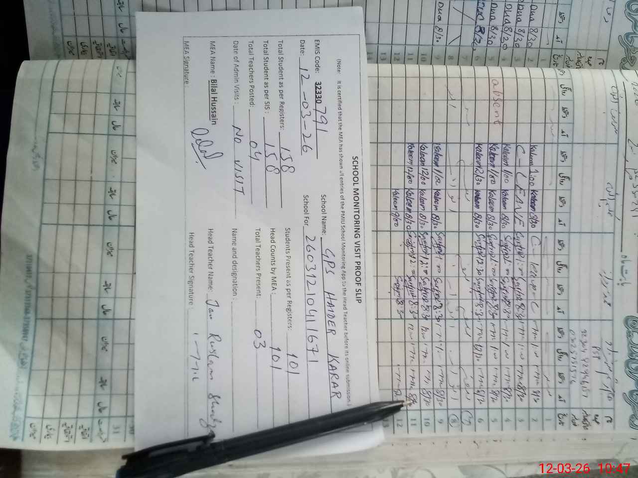 | EMIS Code: 32330791 | Name of School: GPS HAIDER KARAR WALA | |||