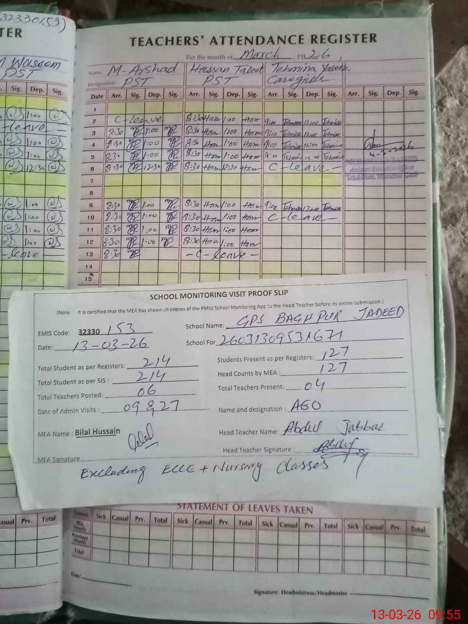 | EMIS Code: 32330153 | Name of School: GPS BAGH WALA JADEED | |||
