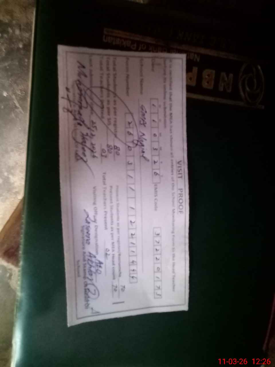 | Remarks (Use Separate Page if Required): GMPS Nagial 37220173 is running in civ residential home from Jan 2025 till to date 11-3-2026. This school have government buildings but it required for repairs and reconstruction. Laraib Imtiaz was in four class but she was discharged from the school April 2025. Sir please update the data on MEA Tab | |||||