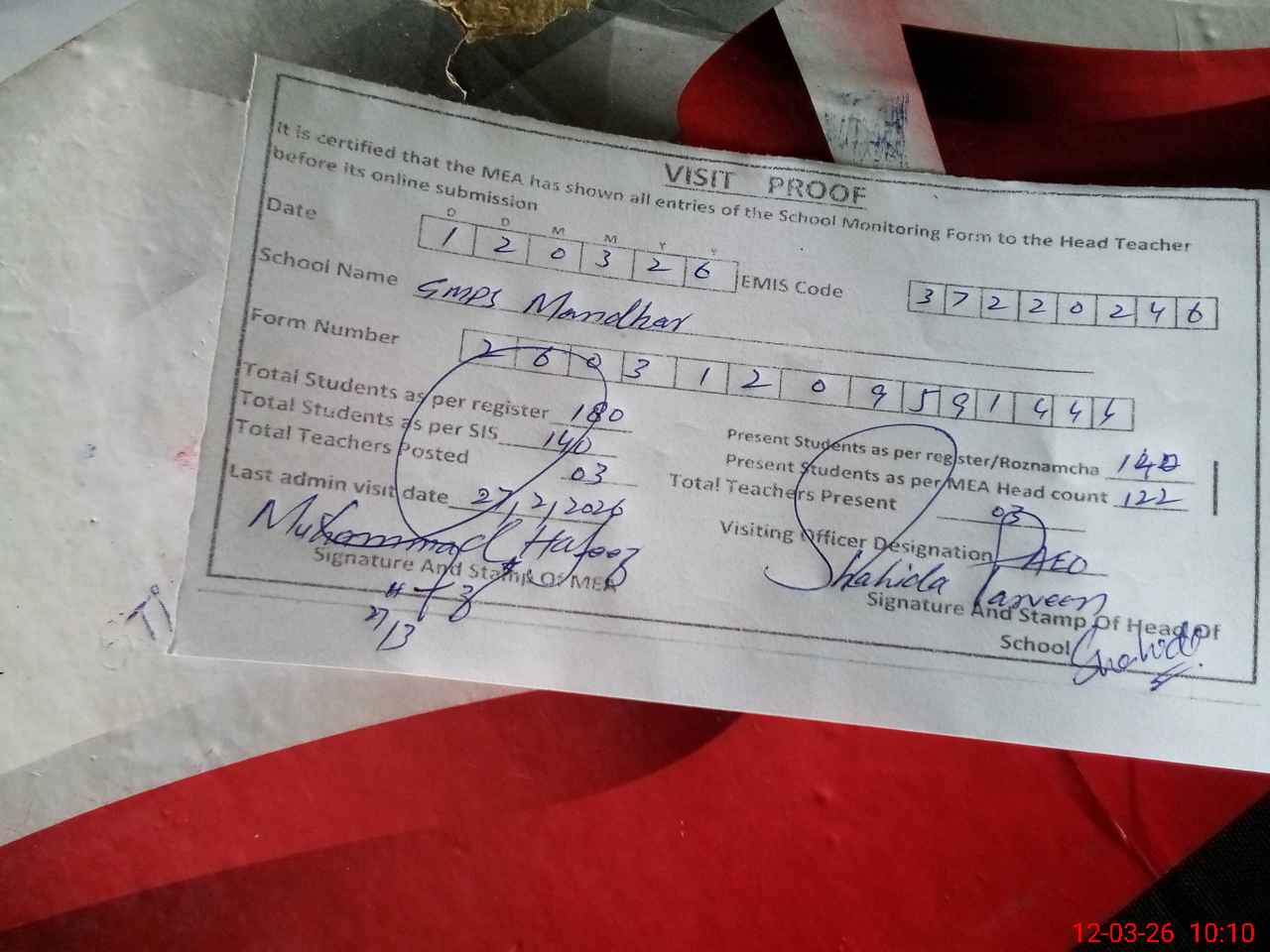 | EMIS Code: 37220246 | Name of School: GGMPS MANDHAR | |||
