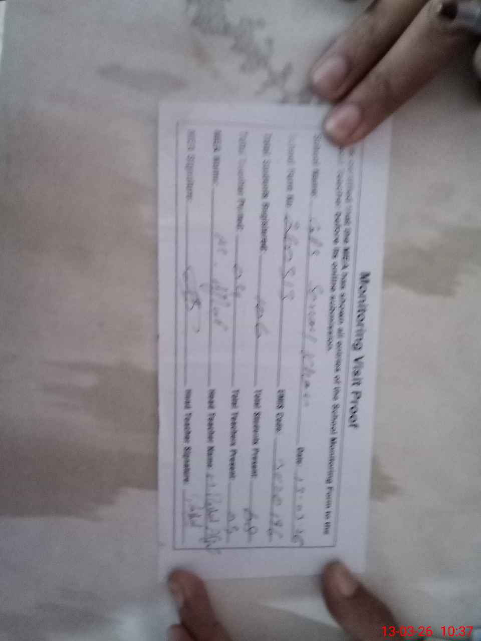 | Attendance Register | Head Teacher | MEA with School | Visit Proof |