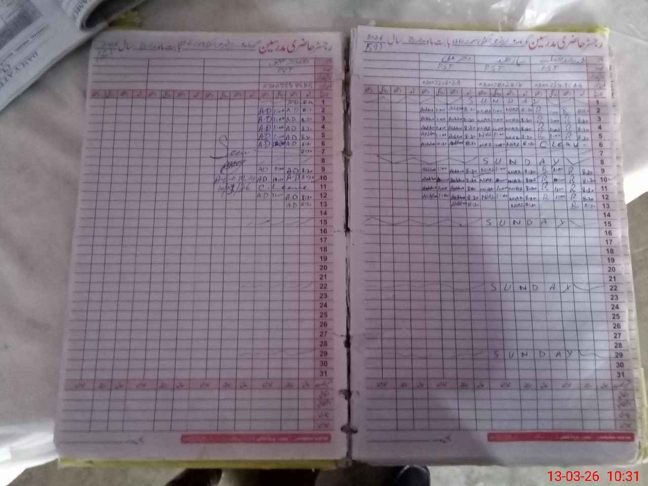 | CNIC | Full Name | Designation | R/C | Absence During Last Calender Month |