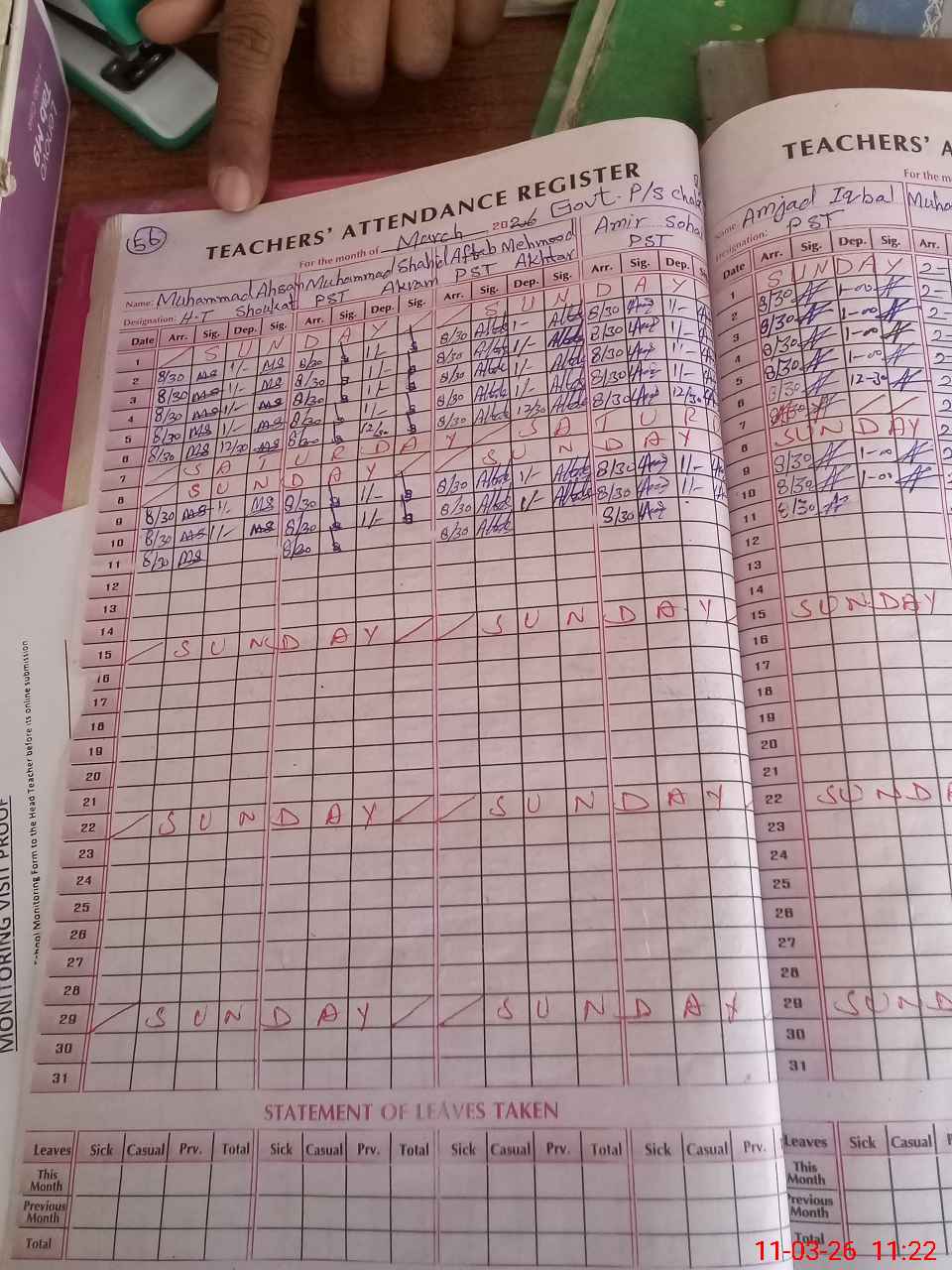 | Monitoring Date: 11-03-2026 | Start Time: 11-03-2026 11:03 AM | End Time: 11-03-2026 11:36 AM | Name of MEA: Ab**** Gh**** | |