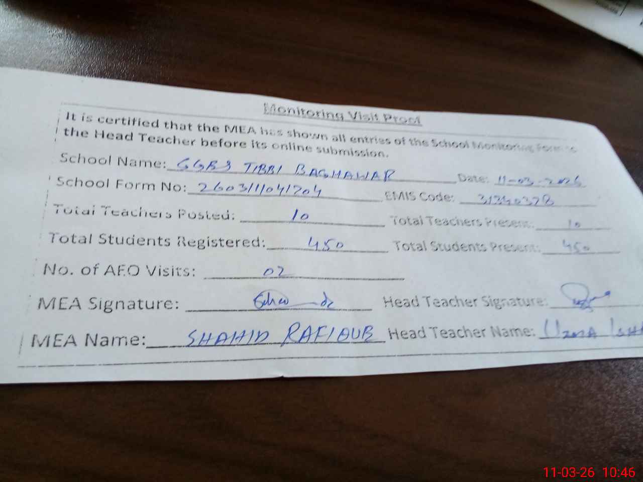 | Certified that this School was Inspected by the Undersigned MEA/DMO Today and the Information Stated Above is as Per Record. | |||||