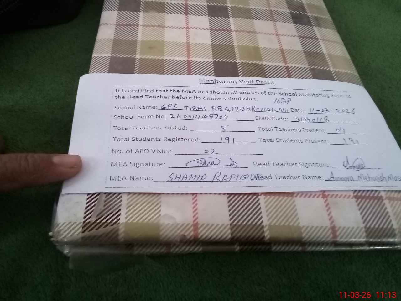 | EMIS Code: 31340118 | Name of School: GPS TIBBI BEGHWER CHAK NO. 168/P | |||