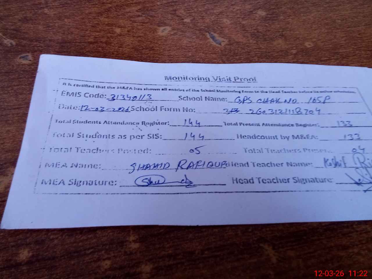 | EMIS Code: 31340113 | Name of School: GPS CHAK 165-P | |||
