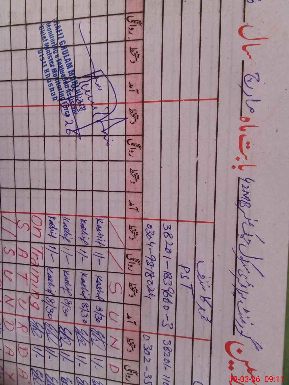 | Name: Mu**** Wa**** Designation: (School Headmaster's/Headmistress's) PST Phone/Cell Number: 03**** |