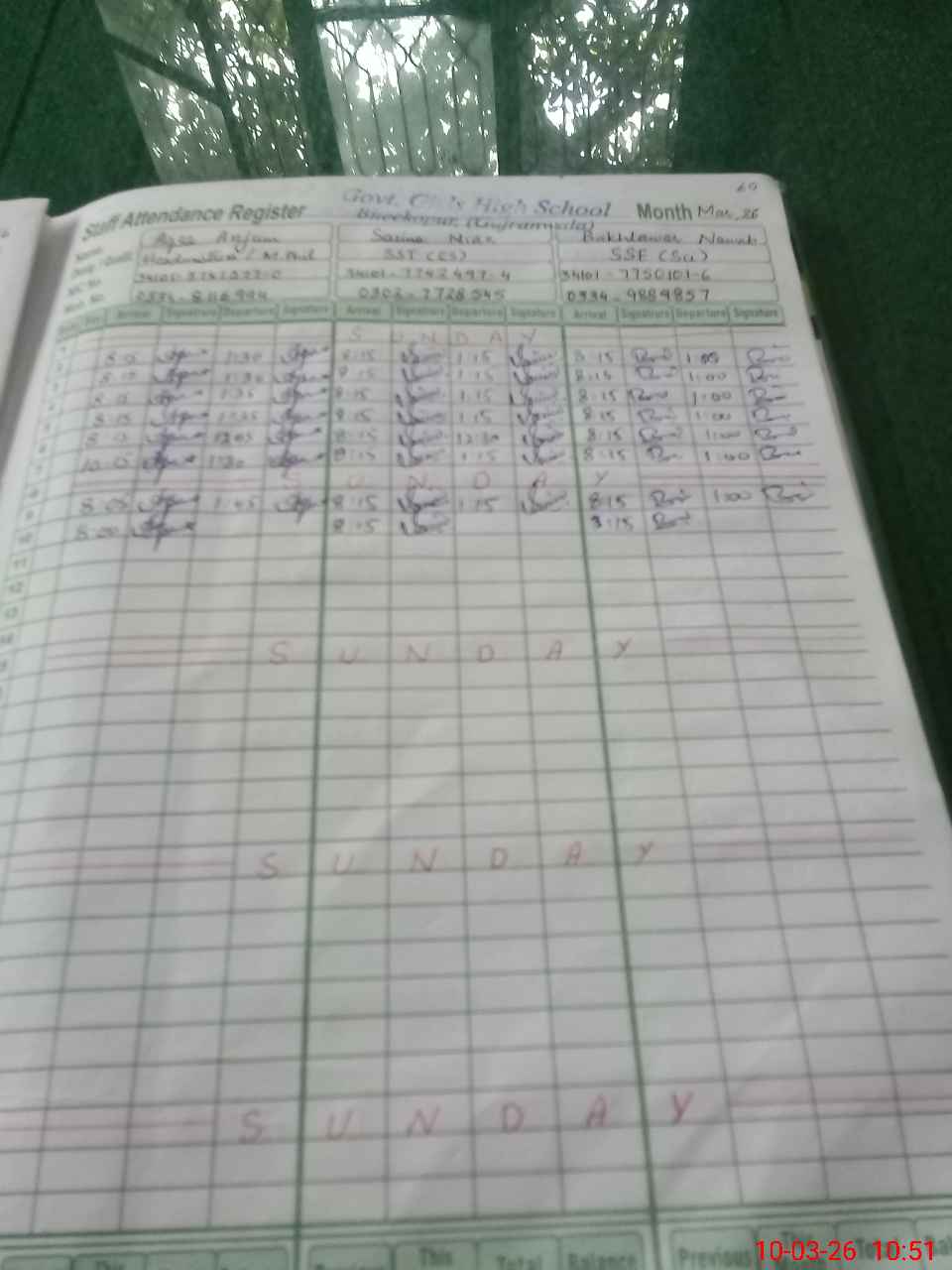 | 34**** | Ma**** Qa**** | SST Arts | Regular | 0 | 0 | 0 | 0 | 0 | 0 | 0 | 0 | 0 | Absent (Un-Authorized) |