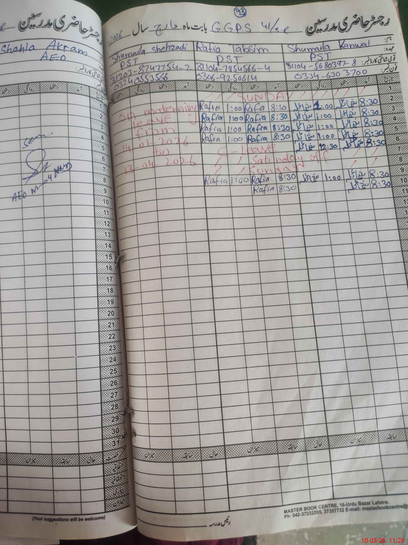 | 31**** | Sh**** Sh**** | PST | Regular | 0 | 0 | 0 | 0 | 0 | 0 | 0 | 0 | 0 | Maternity |