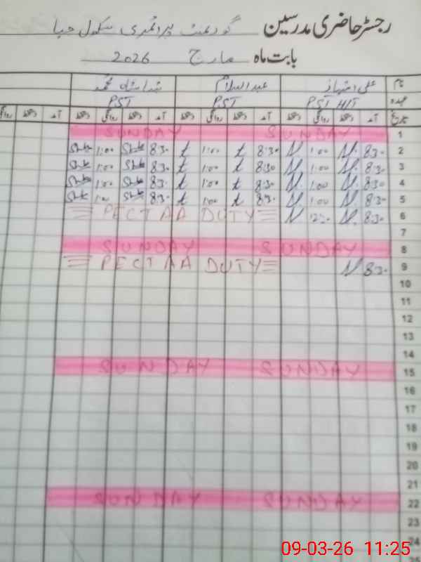 | 35**** | Ab**** Sa**** | PST Science/Maths | Regular | 0 | 0 | 0 | 0 | 0 | 0 | 0 | 0 | 0 | Exam Duty |