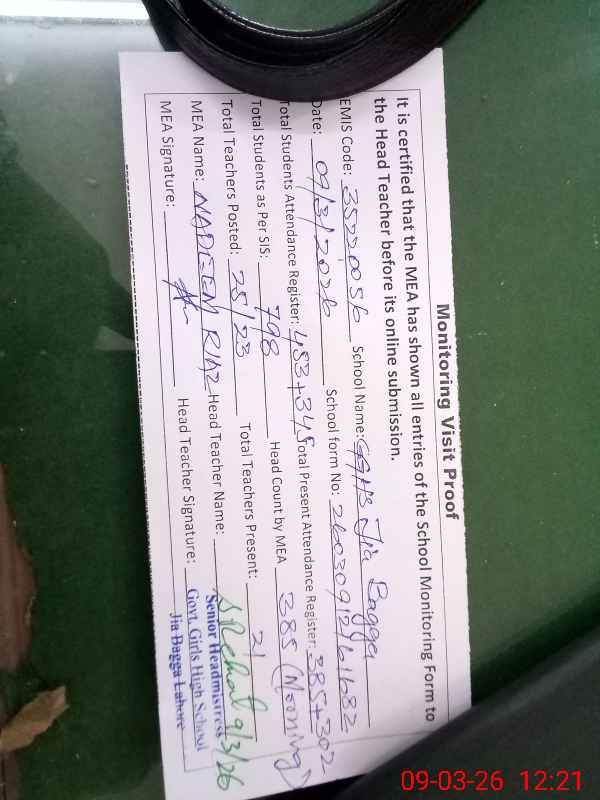 | EMIS Code: 35220056 | Name of School: GGHS JIA BAGGA RAIWIND ROAD | |||
