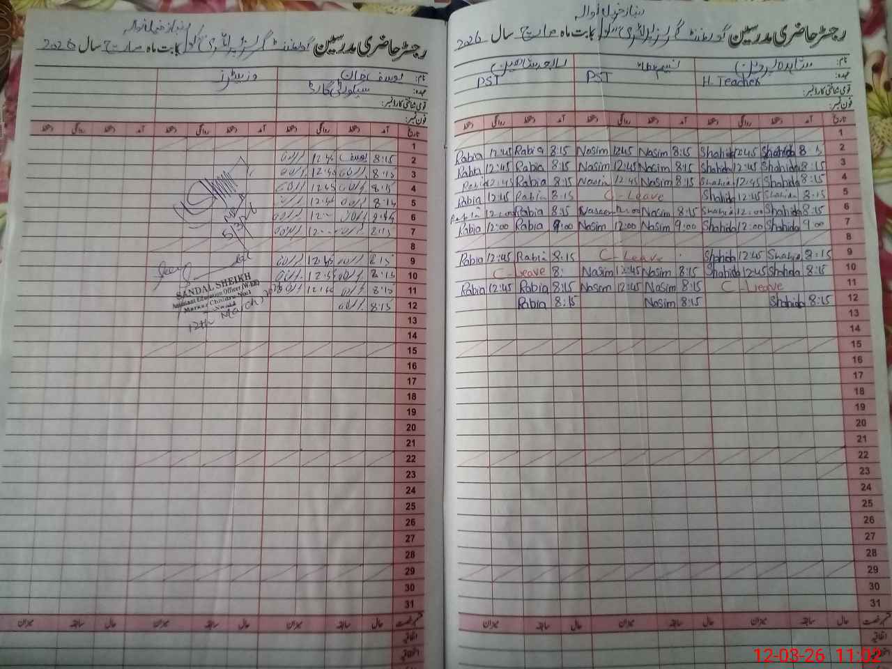 | Name: Sh**** Pe**** Designation: (School Headmaster's/Headmistress's) PST Phone/Cell Number: 03**** |