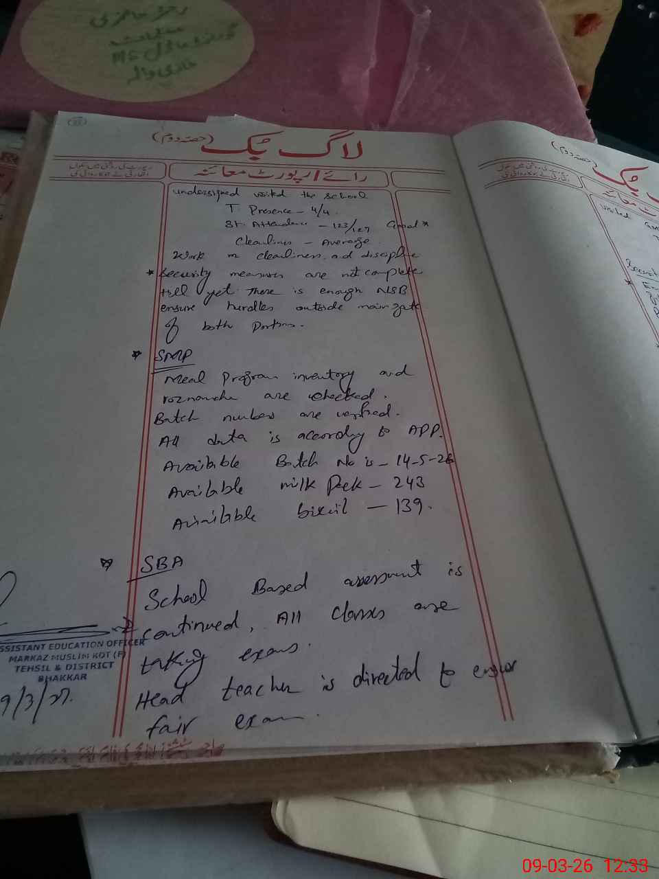 | Certified that this School was Inspected by the Undersigned MEA/DMO Today and the Information Stated Above is as Per Record. | |||||