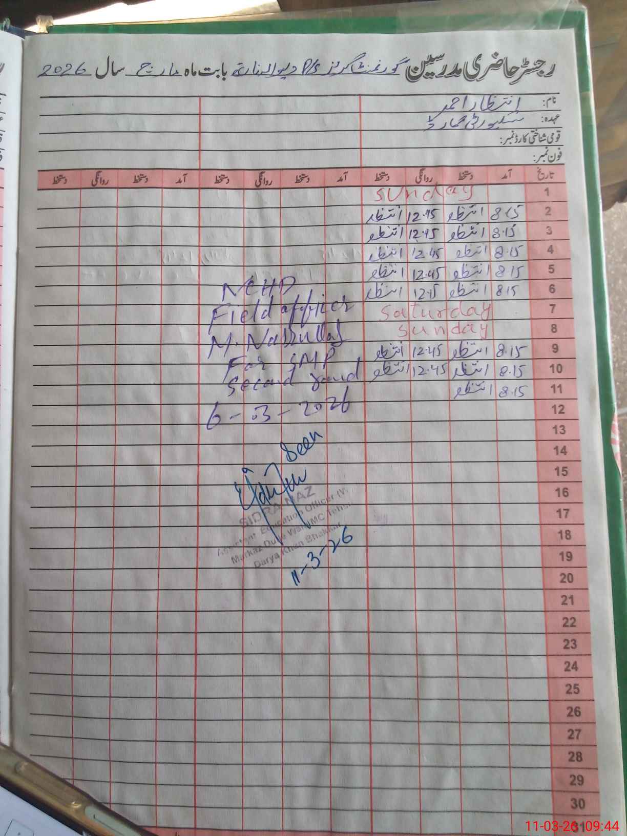 | Monitoring Date: 11-03-2026 | Start Time: 11-03-2026 09:17 AM | End Time: 11-03-2026 09:44 AM | Name of MEA: Si**** Na**** | |