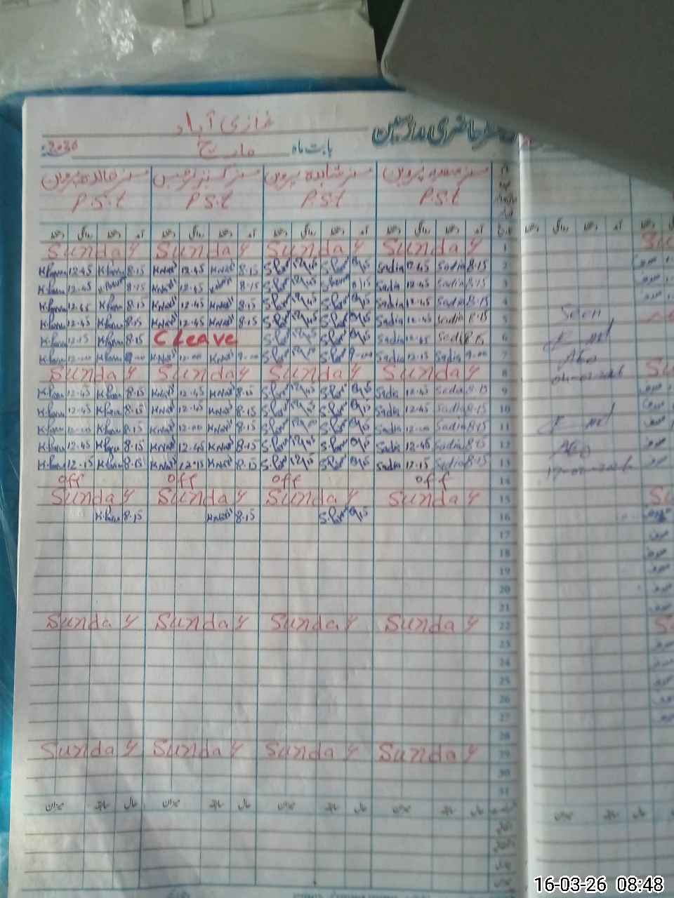 | Leave | Duty | Absent | Maternity | Medical | Ex- Pak |