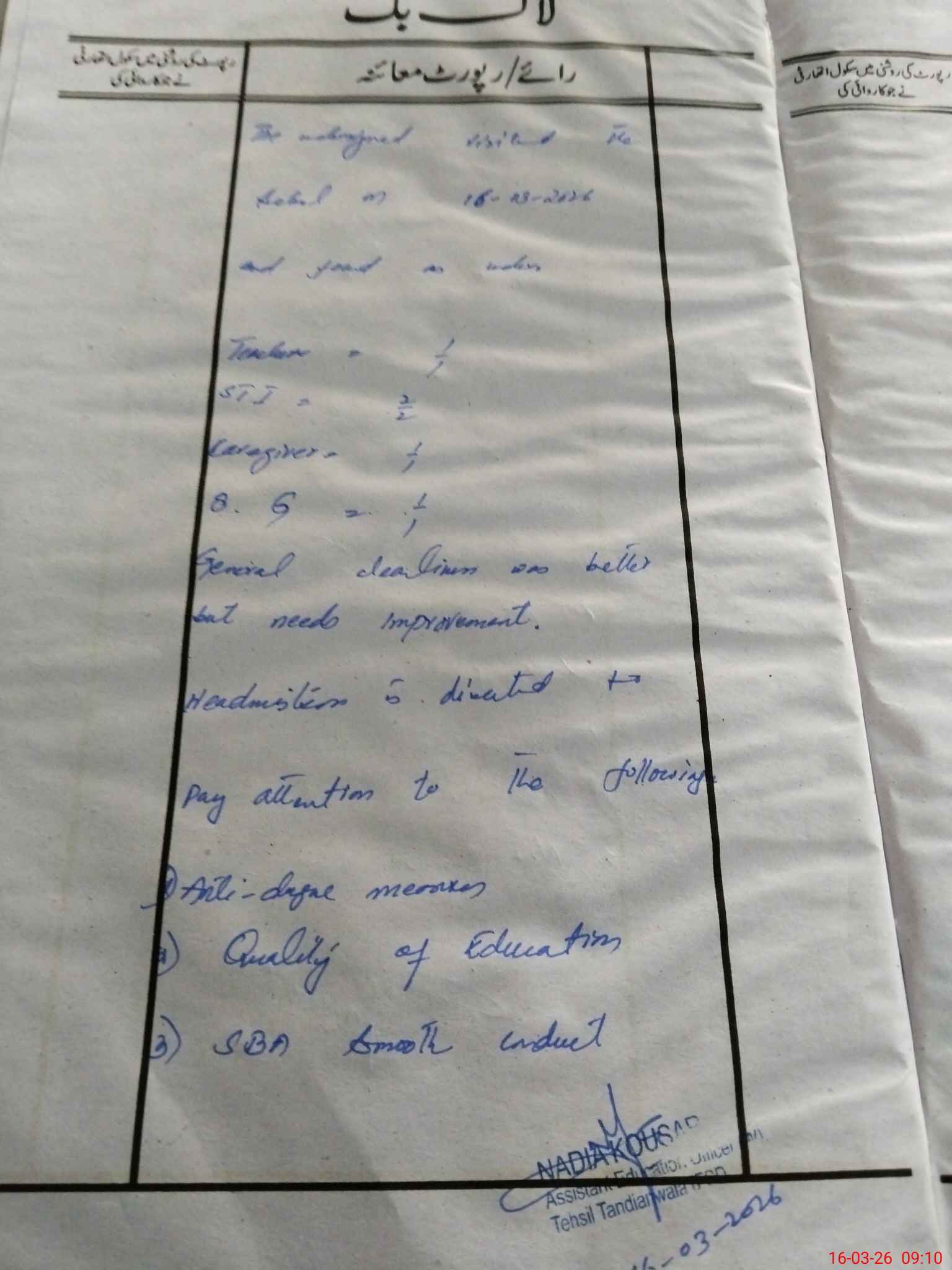 | District: FAISALABAD | Tehsil: TANDLIAN WALA | Markaz: BAHLAK 1 - FEMALE | Level: Primary | |