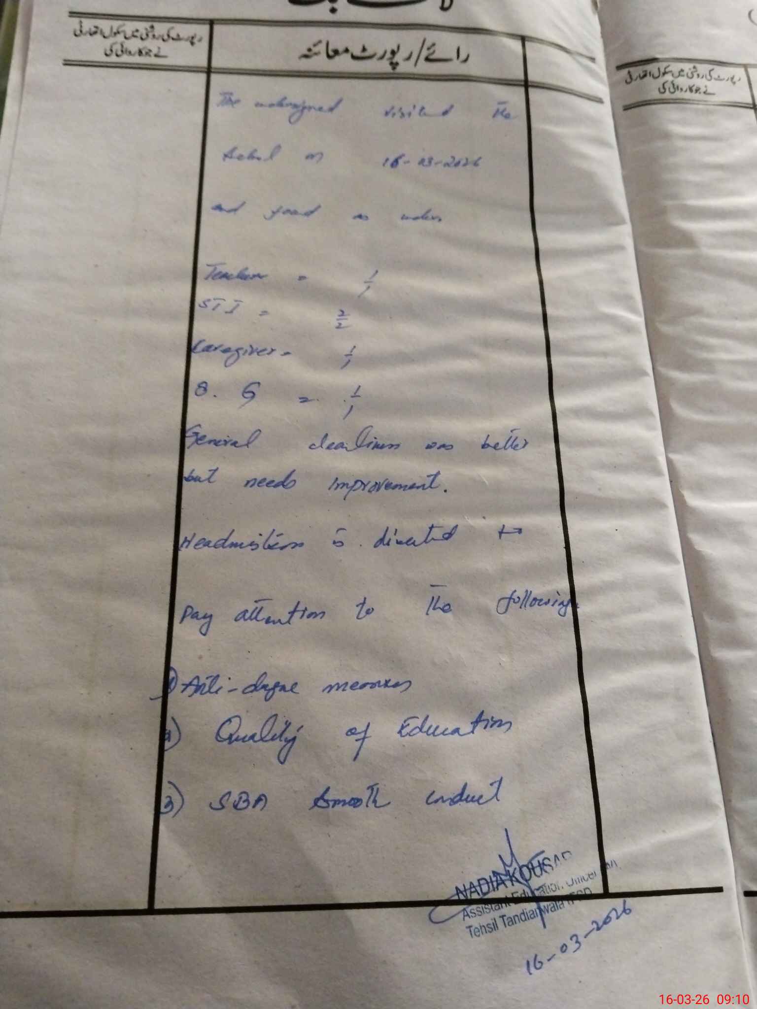 | Certified that this School was Inspected by the Undersigned MEA/DMO Today and the Information Stated Above is as Per Record. | |||||