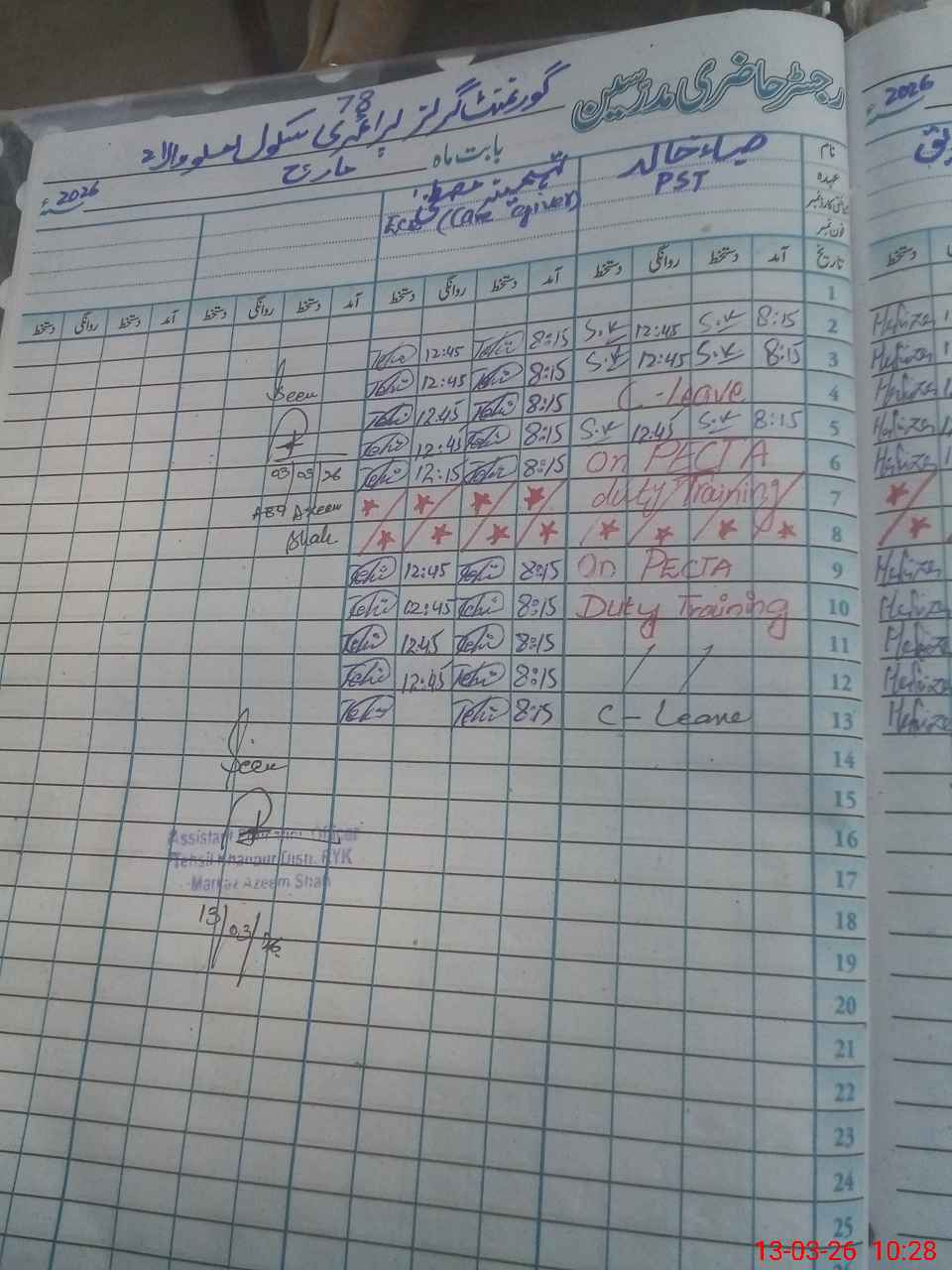 | 31**** | Sa**** Kh**** | PST Science/Maths | Regular | 0 | 0 | 0 | 0 | 0 | 0 | 0 | 0 | 0 | Casual |