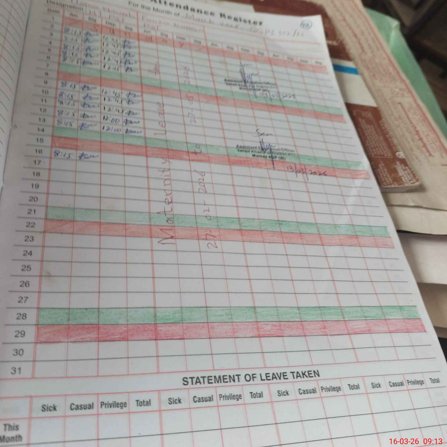 | Leave | Duty | Absent | Maternity | Medical | Ex- Pak |