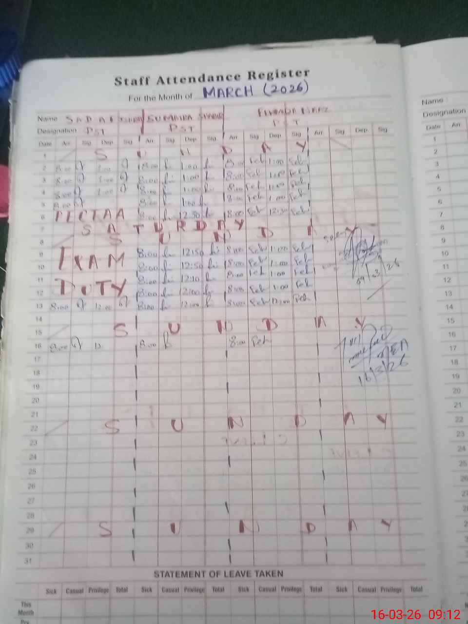 Leave Type | Remarks for today (Leave,Training, Exam,Absent,Late, Other duty) |
