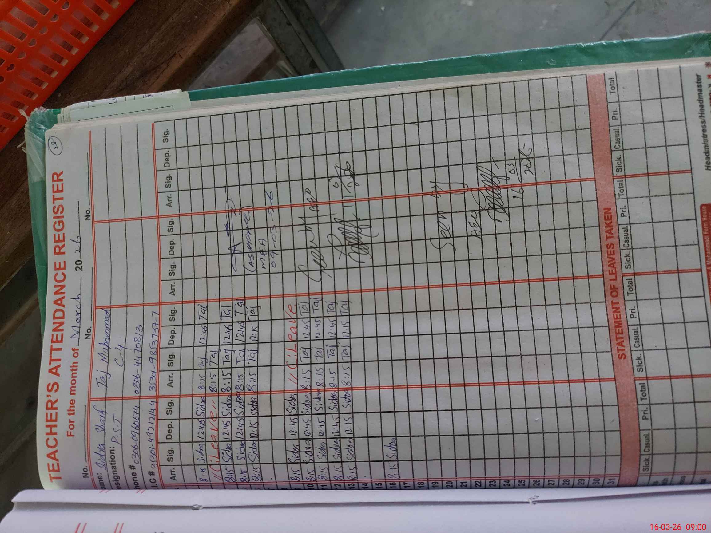 | Name: Sh**** Ra**** Designation: (School Headmaster's/Headmistress's) PTC/JV Phone/Cell Number: 03**** |