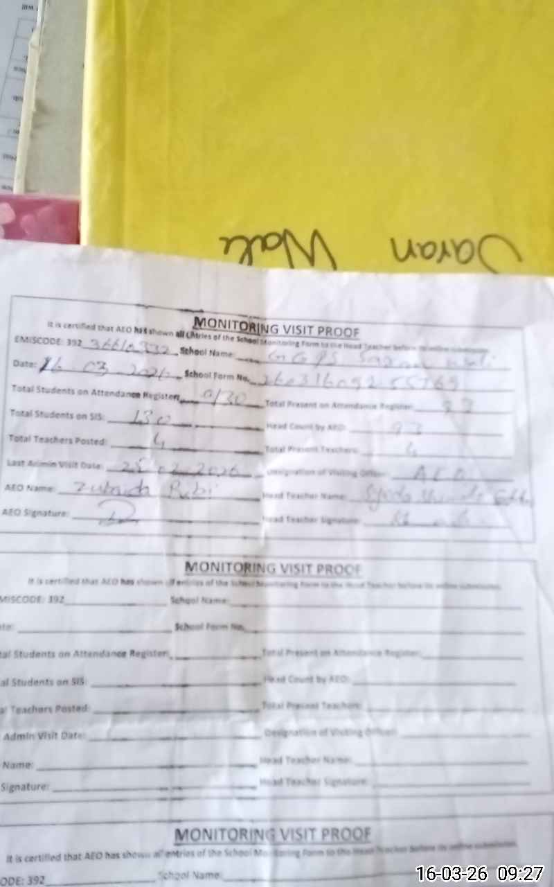 | Attendance Register | Head Teacher | MEA with School | Visit Proof |