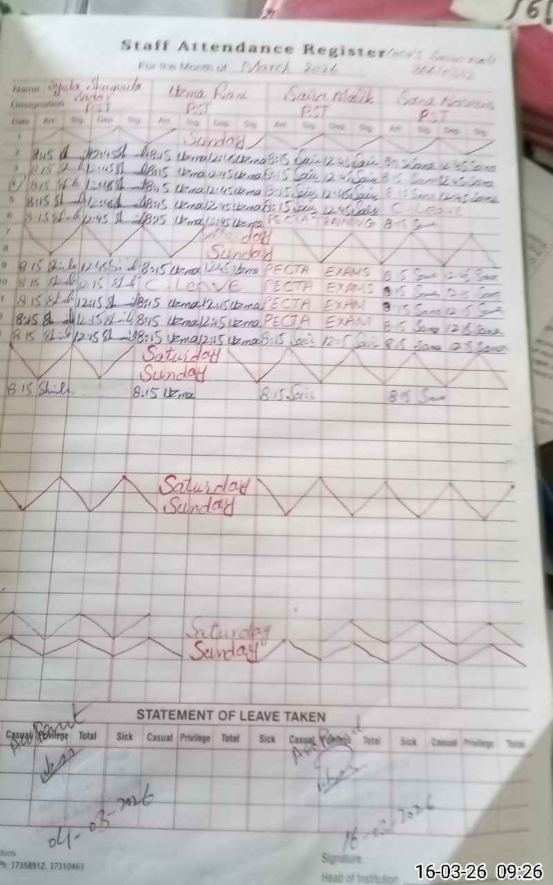 | Name: Se**** Sh**** Sa**** Designation: (School Headmaster's/Headmistress's) PST Phone/Cell Number: 03**** |