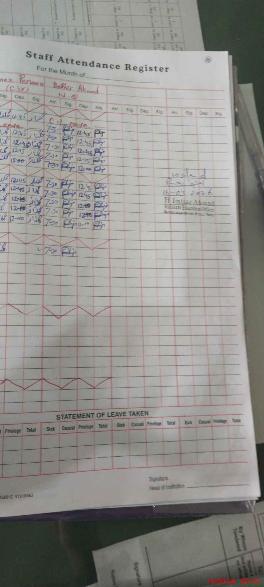 | Name: Si**** Sa**** Designation: (School Headmaster's/Headmistress's) SST Phone/Cell Number: 03**** |