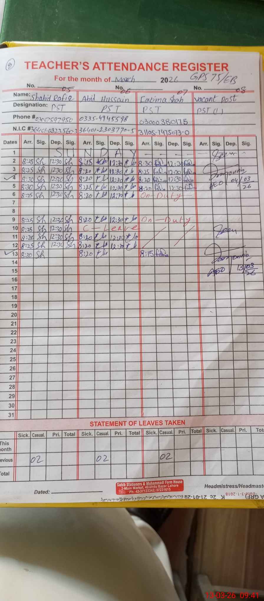 | Name: MU**** YA**** Designation: (School Headmaster's/Headmistress's) PST Phone/Cell Number: 03**** |