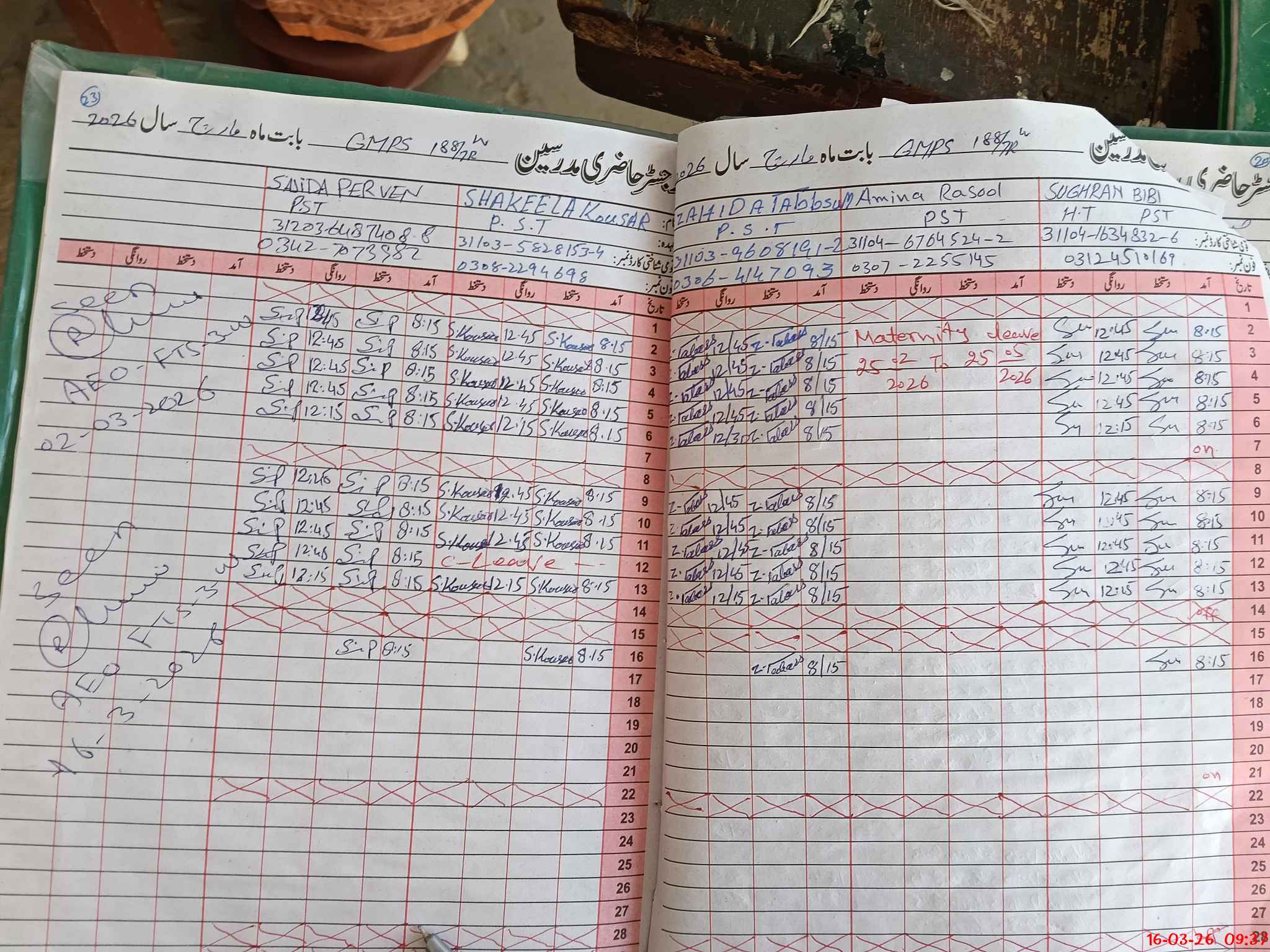 | Leave | Duty | Absent | Maternity | Medical | Ex- Pak |