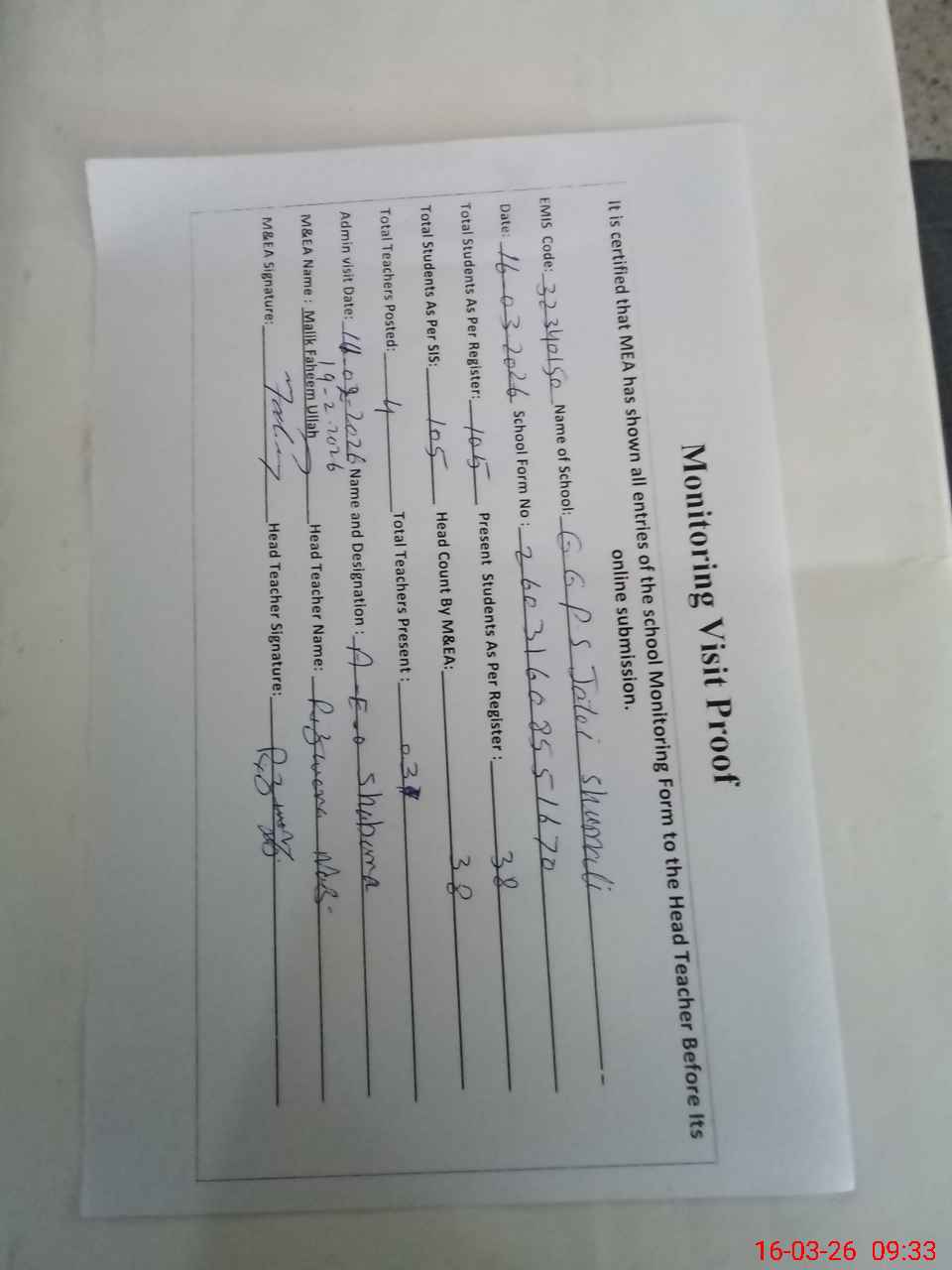 | EMIS Code: 32340150 | Name of School: GGPS JATOI SHUMALI | |||