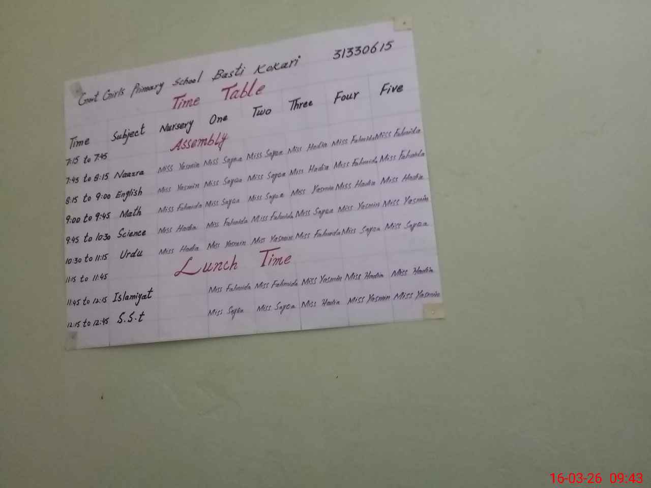 | Name: Sa**** Kh**** Designation: (School Headmaster's/Headmistress's) PST Phone/Cell Number: 03**** |