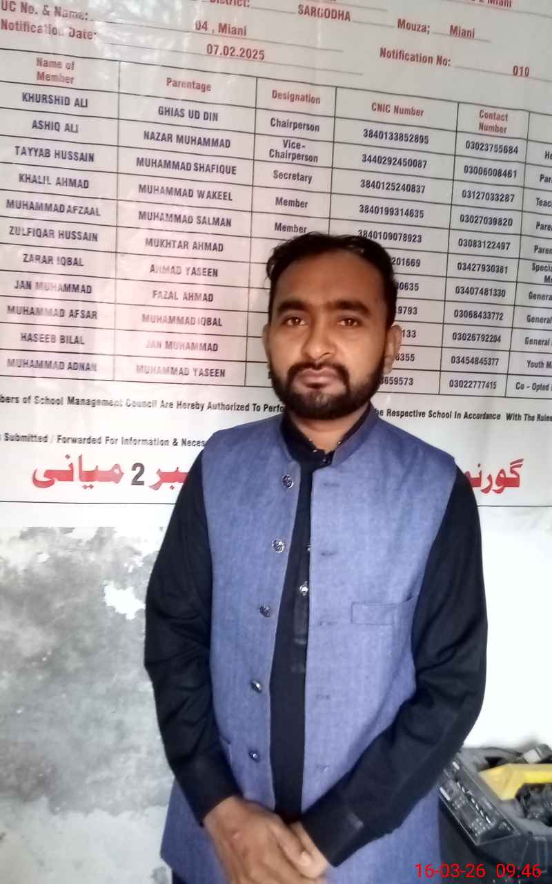 | Name: KH**** AL**** Designation: (School Headmaster's/Headmistress's) PTC/JV Phone/Cell Number: 03**** |