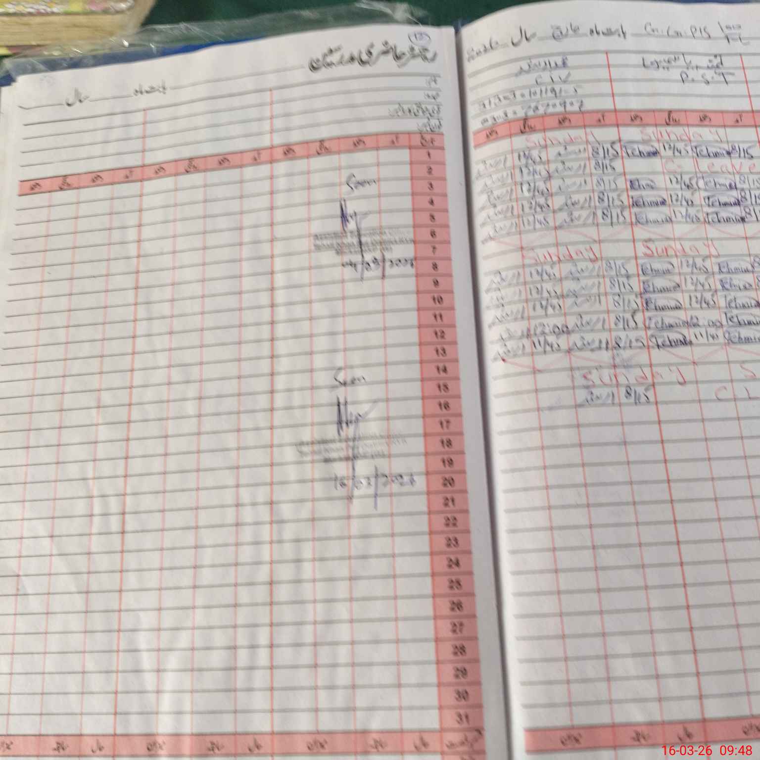 | CNIC | Full Name | Designation | R/C | Absence During Last Calender Month |