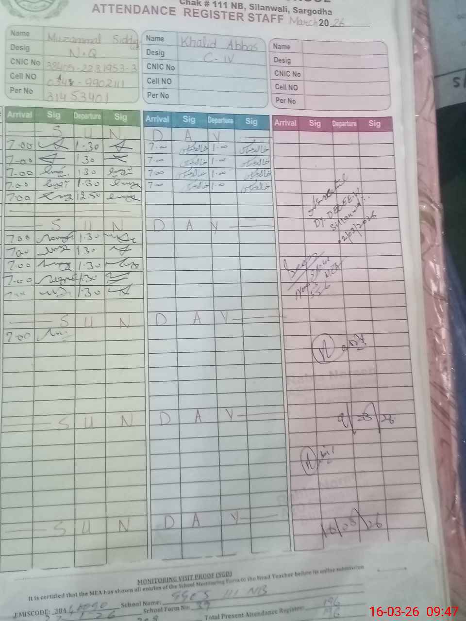 | Name: Sy**** AFI**** SH**** Designation: (School Headmaster's/Headmistress's) SST (Arts) Phone/Cell Number: 03**** |