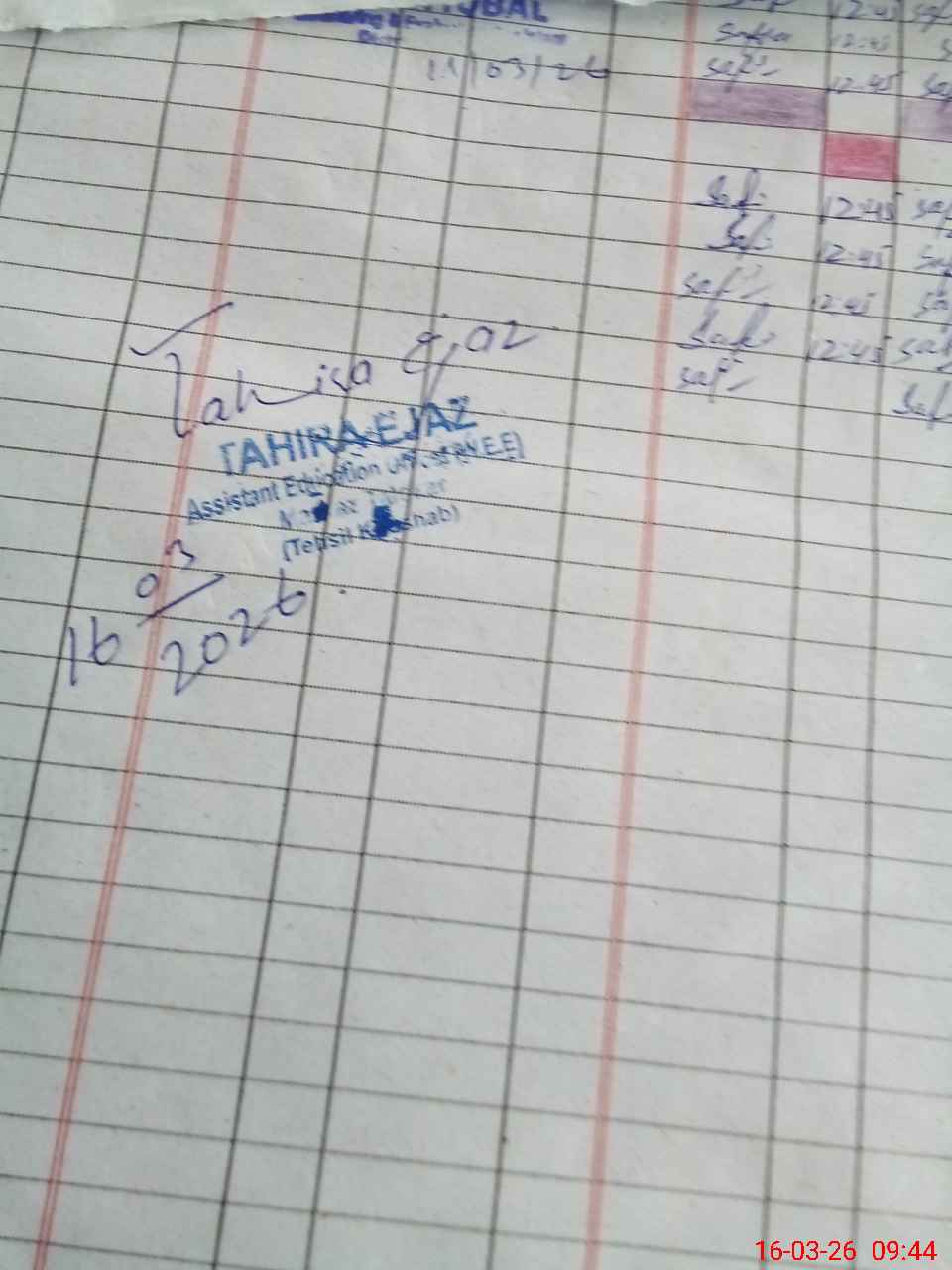 | Monitoring Date: 16-03-2026 | Start Time: 16-03-2026 09:16 AM | End Time: 16-03-2026 09:49 AM | Name of MEA: TA**** EJ**** | |