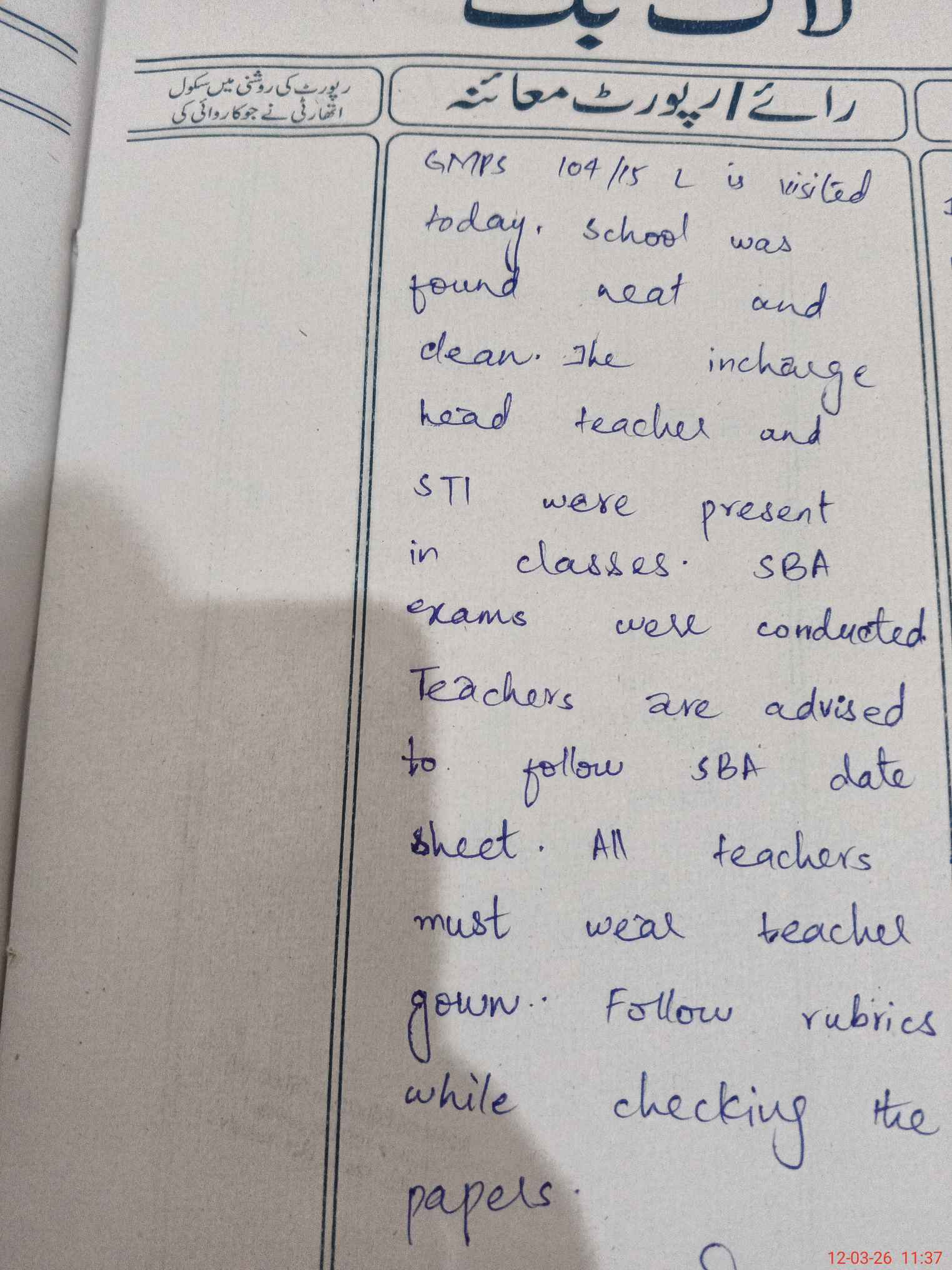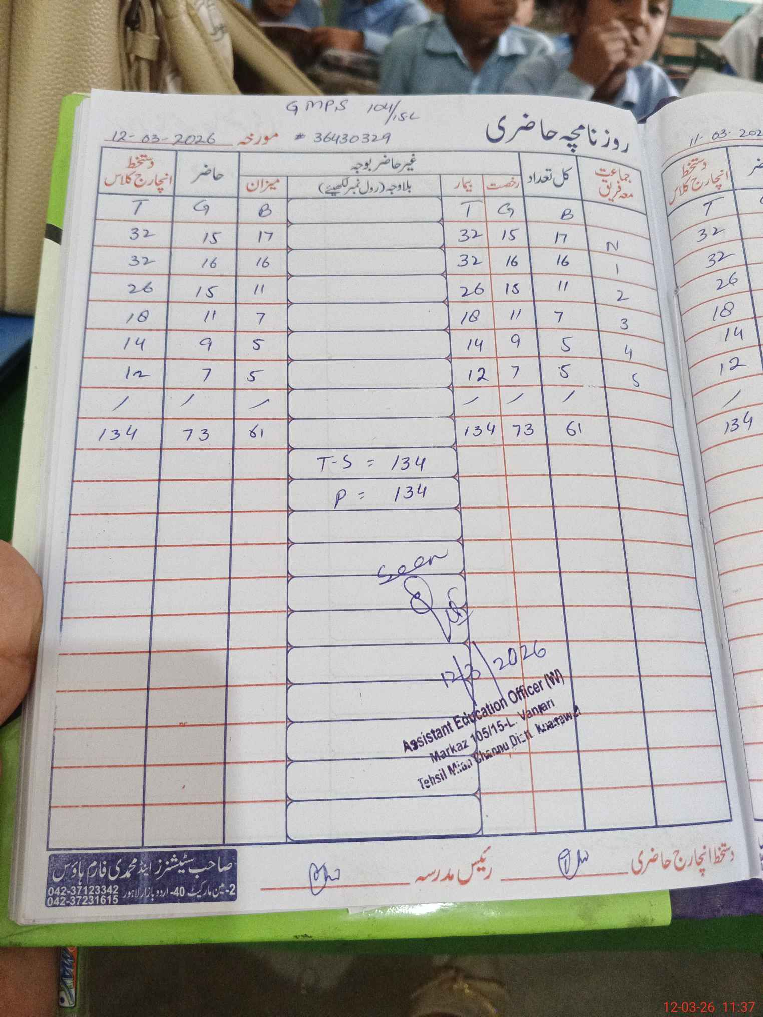 | EMIS Code: 36430329 | Name of School: GMPS 104/15-L, MIAN CHANNU | |||