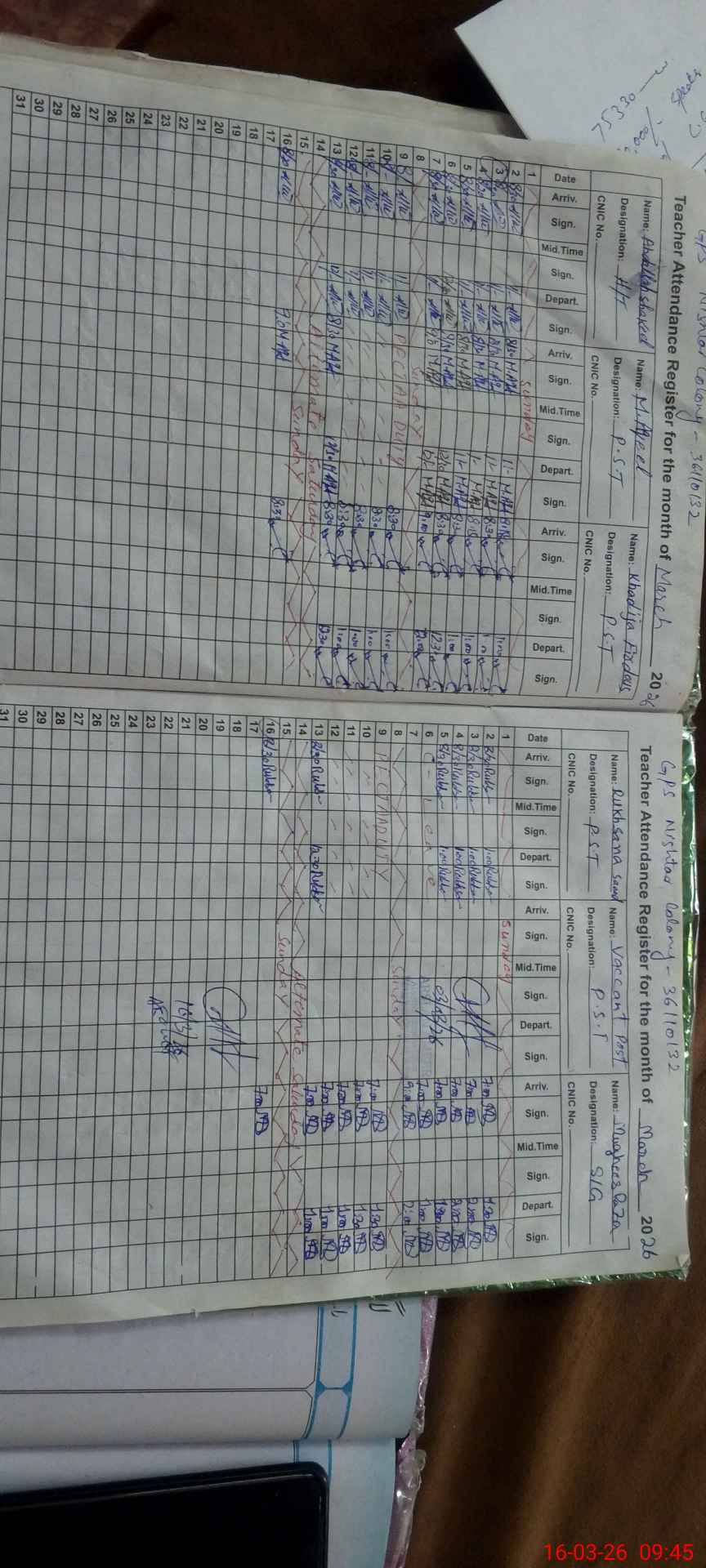 | CNIC | Full Name | Designation | R/C | Absence During Last Calender Month |