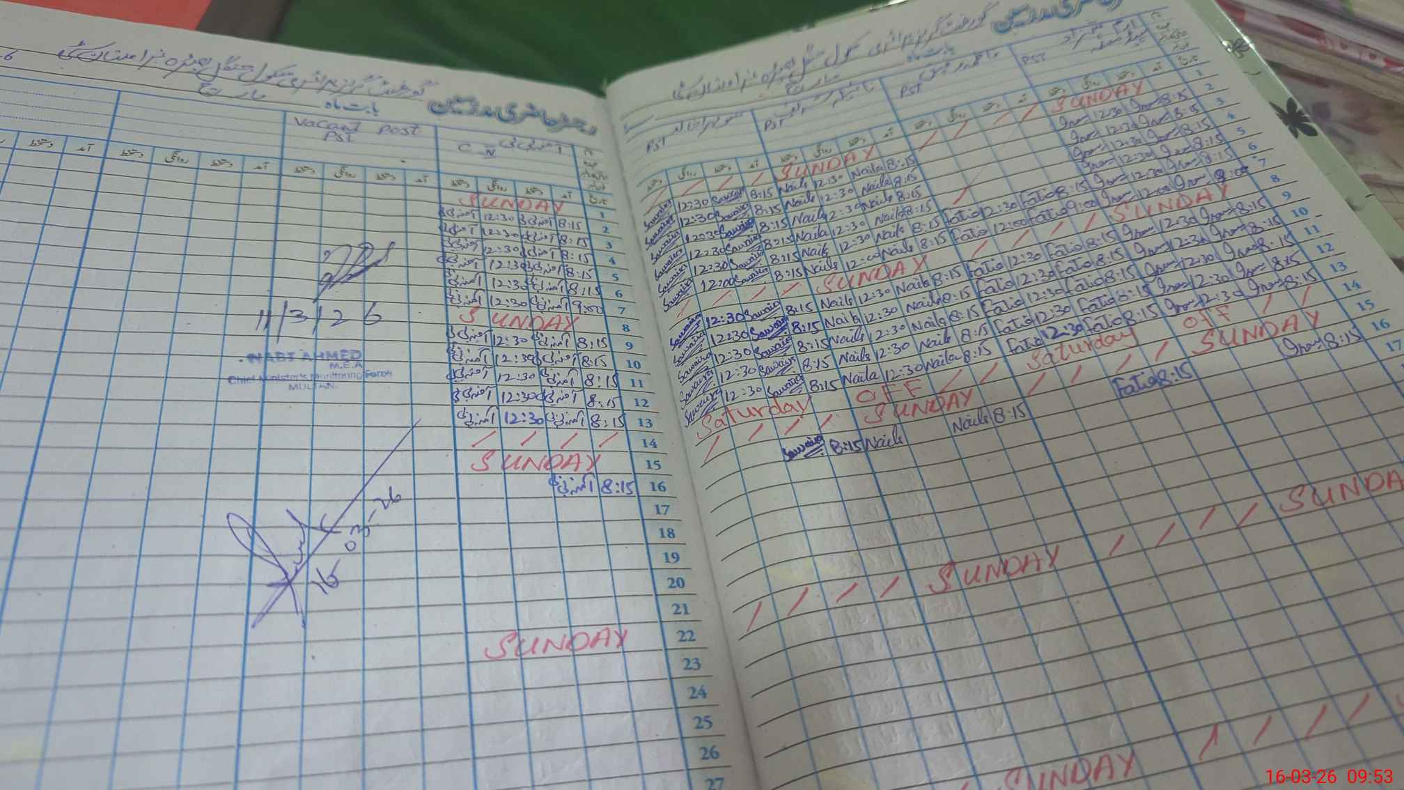 | CNIC | Full Name | Designation | R/C | Absence During Last Calender Month |