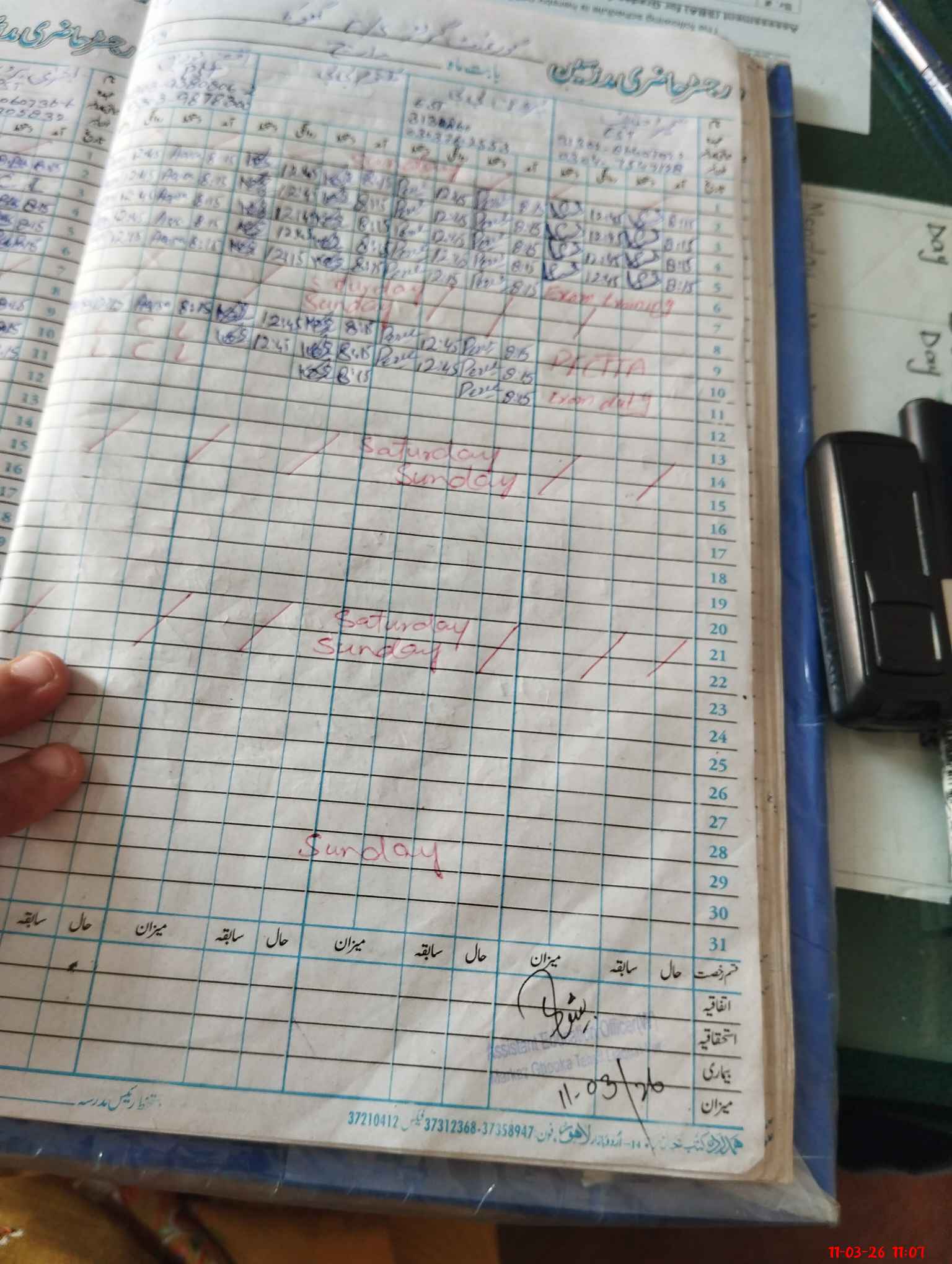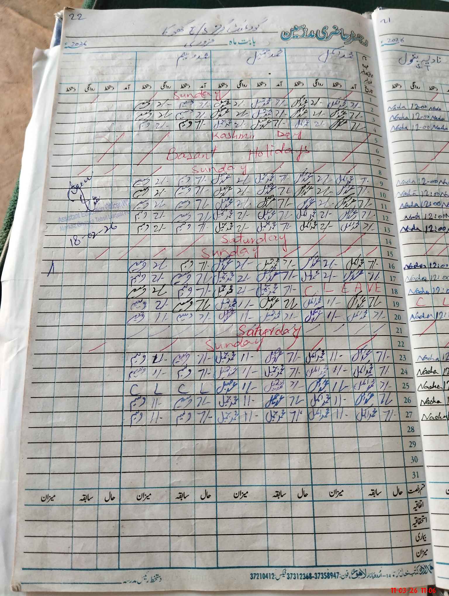| CNIC | Full Name | Designation | R/C | Absence During Last Calender Month |