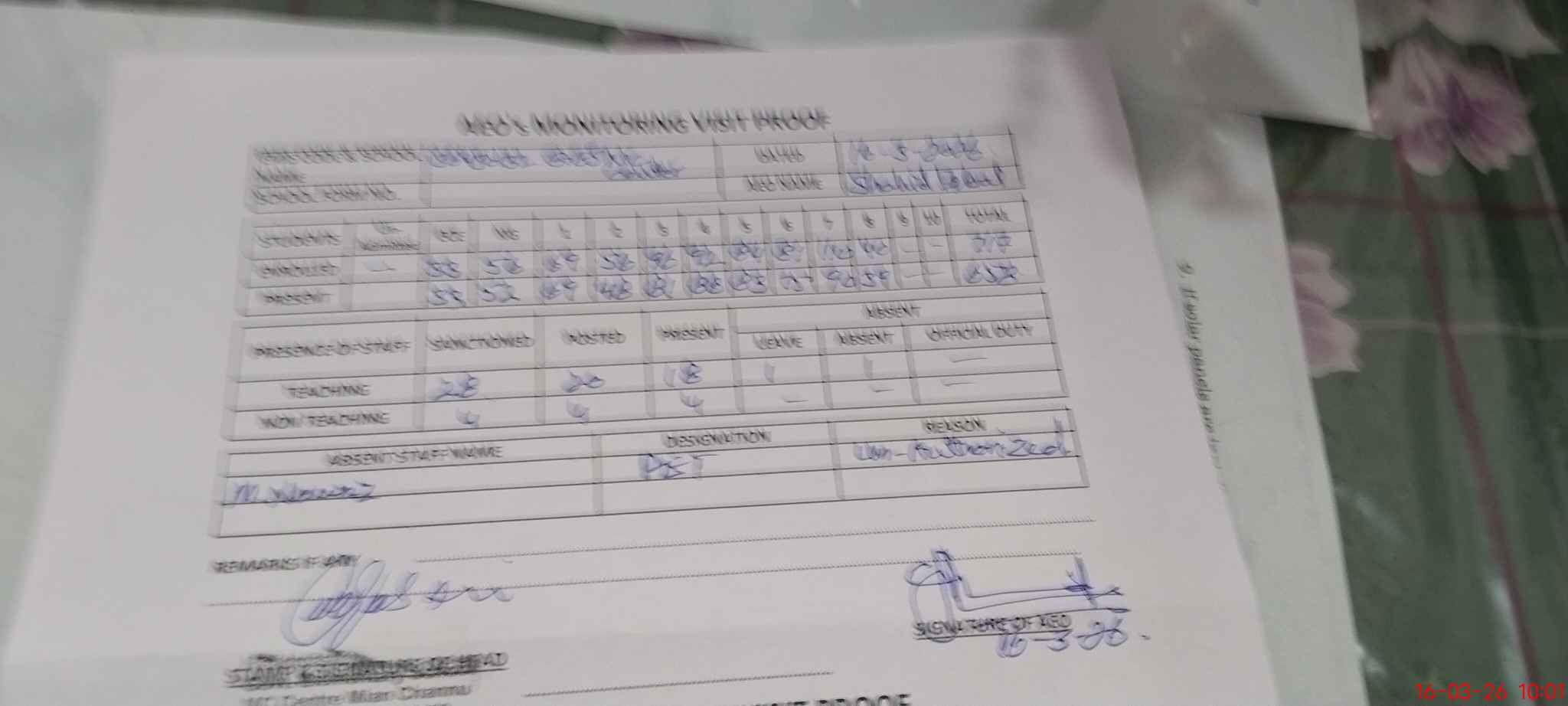 | Attendance Register | Head Teacher | MEA with School | Visit Proof |