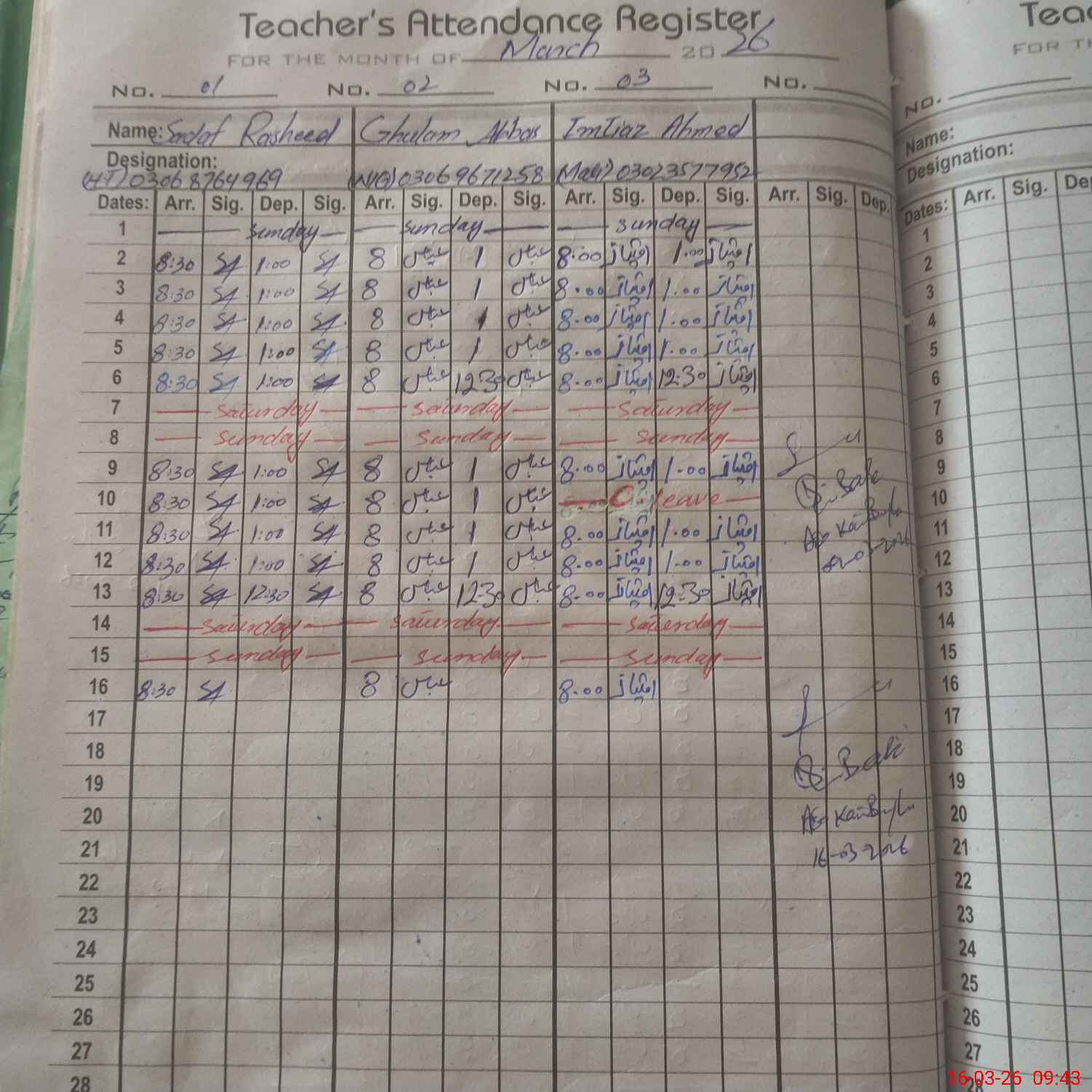 | Name: SA**** RA**** Designation: (School Headmaster's/Headmistress's) PST Phone/Cell Number: 03**** |