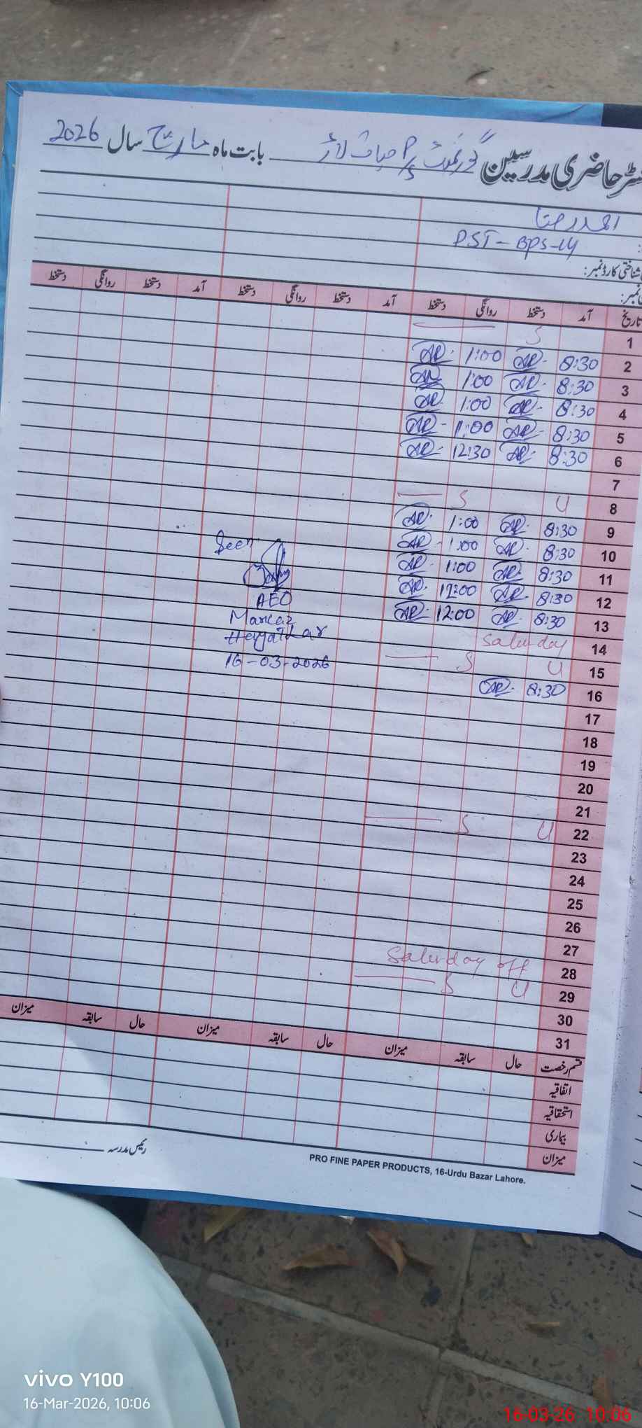 | Name: QA**** M.IQ**** Designation: (School Headmaster's/Headmistress's) PST Phone/Cell Number: 03**** |