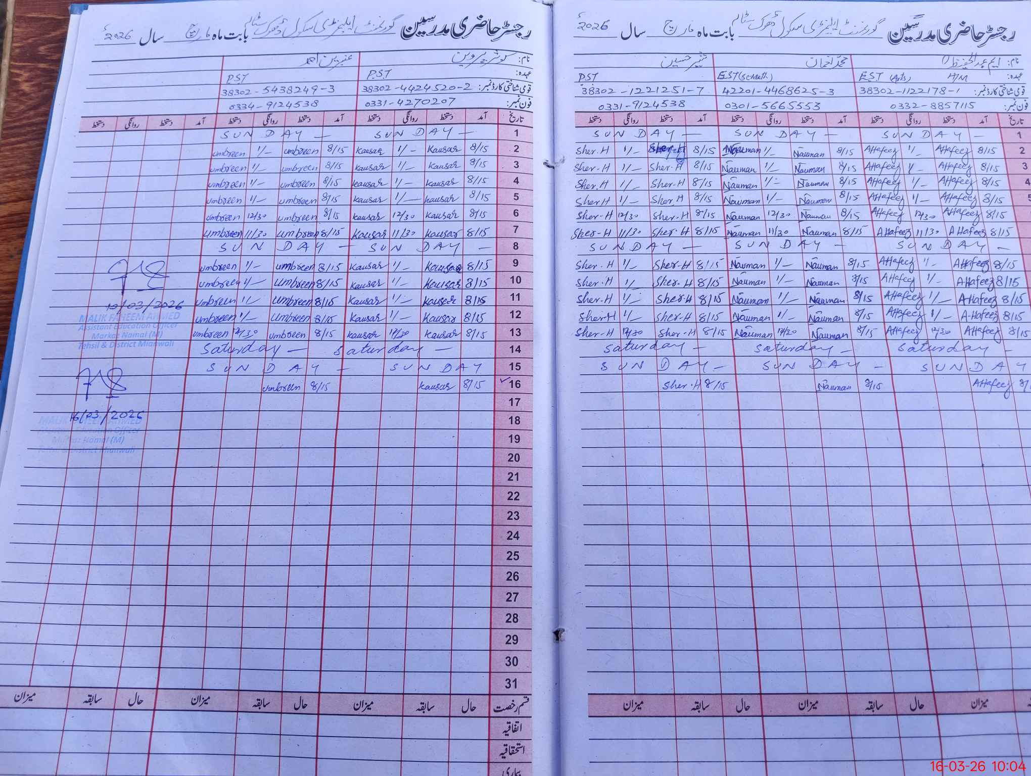 | Name: AB**** HA**** Designation: (School Headmaster's/Headmistress's) EST Phone/Cell Number: 03**** |