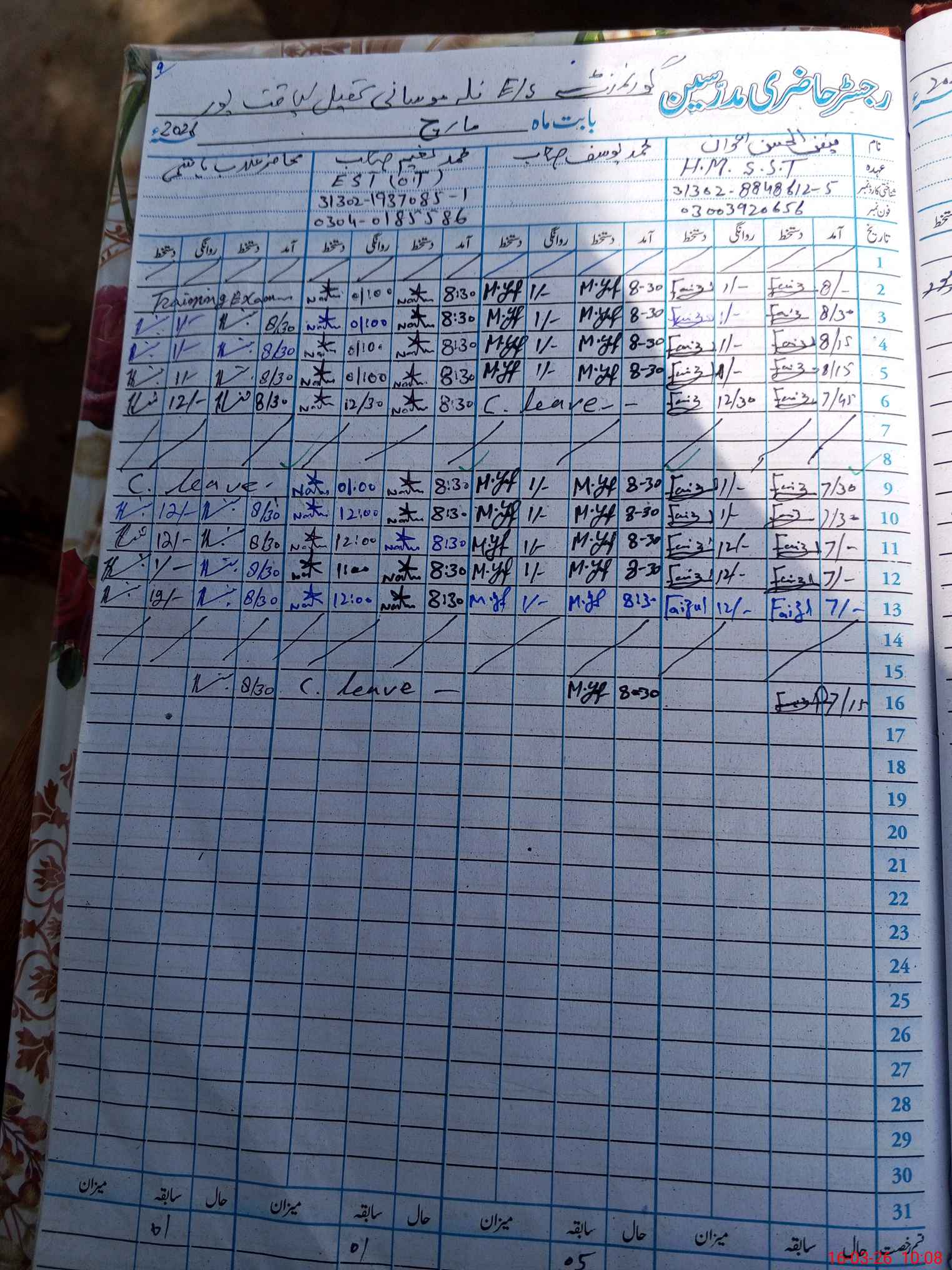 | Name: FA**** ULHA**** FA**** Designation: (School Headmaster's/Headmistress's) SST (GEN) Phone/Cell Number: 03**** |